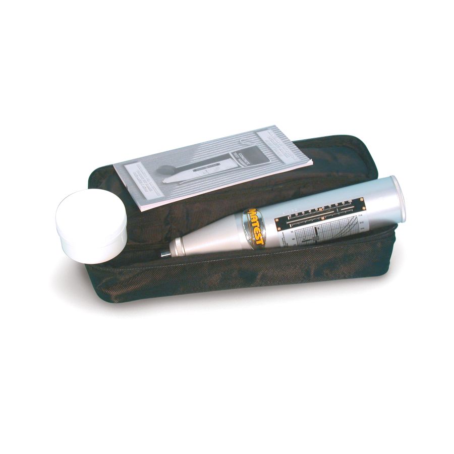 Spring impact energy 0,225 mkg.(2,207 Joule) Suitable for finished concrete structures and buildings having strength resistances from 10 to 70 N/sq.mm. This concrete test hammer,entirely produced by Matest, has aluminium frame, and thanks to its very accurate manufacture processing and selected components ensures high precision test results in the time.